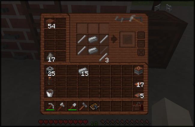 - Верстак с сундуком – это верстак, который не только выглядит подходящим к индустриальным сборкам, но и имеет функции запоминания предыдущих крафтов, и сохранения в себе вещей, чтобы не пришлось носить их с собой. Всего в нем имеется 8 слотов для хранения предметов.