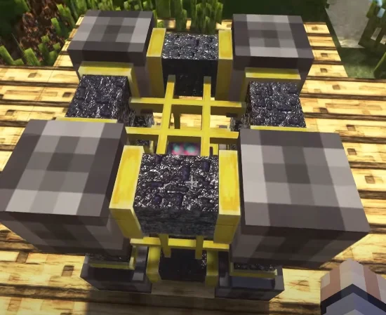 Далее вам понадобится создать ядро, которое «оживит» вашу постройку. Оно создаётся с помощью двух обсидианов, четырёх слитков железа, двух эндер пёрлов и одного алмаза.