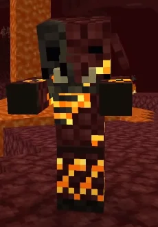 И первого моба зовут гнилым, горящим пиглином. Его тело уже почти полностью сформировано из адского камня, а кости его уже давно иссушены. Он также имеет довольно прикольную анимацию, которая сразу мне понравилась. Появляется он практически, во всём нижнем мире. Такие пиглины всем сердцем ненавидят страйдеров (ванильный адский моб), и будут стараться их убивать. Они обладают абсолютным иммунитетом к огню и горящим блокам, однако, спустя 20 минут реального времени, он начнёт плавиться, и в конце окончательно расплавится, оставив после себя кучу огненных эффектов.