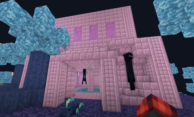 На архипелаге островов Эндер мира ваш игровой персонаж может наткнуться на азурный биом. Он имеет фиолетовую траву, произрастающую прямо на блоках эндерняка, а также, здесь растут невероятные космические цветы, похоже чем-то на хорус из ванильной игры.