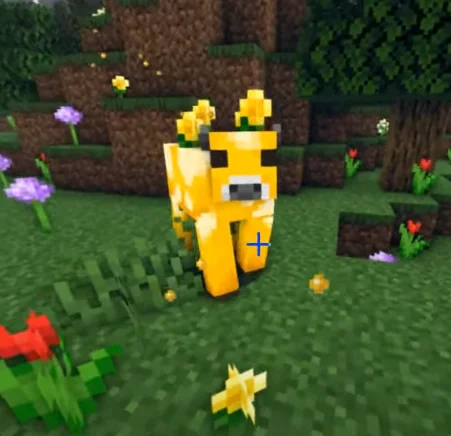 Следующий моб на очереди – цветочная корова. Это желтая коровка, покрытая одуванчиками (это тот самый моб, которого хотели добавить в официальную игру, если бы он победил на голосовании). От цветочной коровы исходят желтые частицы, которые со временем пропадают. Данный вид коровы обитает везде, где есть одуванчики, к слову, они любят их есть и потом спавнить вокруг себя. Размножаются и лечатся цветочные коровы с помощью ванильного золотого яблока, которое создается с помощью обычного красного яблока, а также золотых самородков.