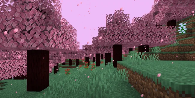 Биом сакуры – прекрасный, вечно цветущий район, в котором находится только один вид дерева - это, соответственно, сакура. На территориях этого биома всегда выпадают лепестки сакуры с неба (как капли обычного дождя из ванильной игры), возможно, от ветра. Небо здесь покрыто розовой глазурью.