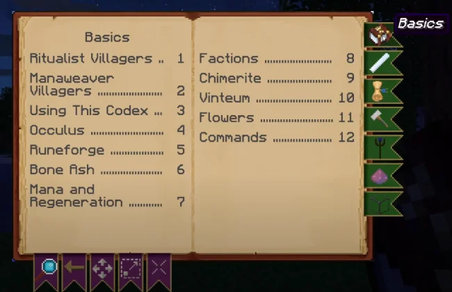 Примечание. Когда вы слишком долго сидите в кодексе, модификация переключает ваше время суток на противоположное, например, если вы только зашли в мир и получили аркановый кодекс, то изучая его на протяжении пяти минут реального времени, в мире наступит ночь, и наоборот.