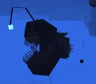 Первое существо, на которое мы сегодня будем смотреть – удильщик, подводный обитатель нового зимнего биома. Имеет всего 40 единиц здоровья (20 сердец, а у игрового персонажа их всего 10) и примерно 7 единиц урона (3.5 сердца за одно попадание атакой). После смерти выпадает небольшое количество опыта, а также с небольшим шансом – фонарь удильщика.