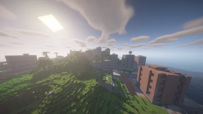 Создав и зайдя в такой мир, если повезет, то можно сразу встретить современные многоэтажные дома. Хоть города и кажутся большими, но в них нет никакой жизни, кроме разных животных. Все дома уже много лет заброшенные и пустые. Такие города можно найти в любом биоме. Во многих домах можно заметить лианы и другие заросли. Помимо многоэтажек, в городах встречаются разные офисы, фонтаны, деревья и парки. Некоторые здания хорошо уцелели, а некоторые практически разрушены до фундамента.