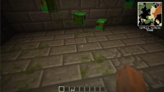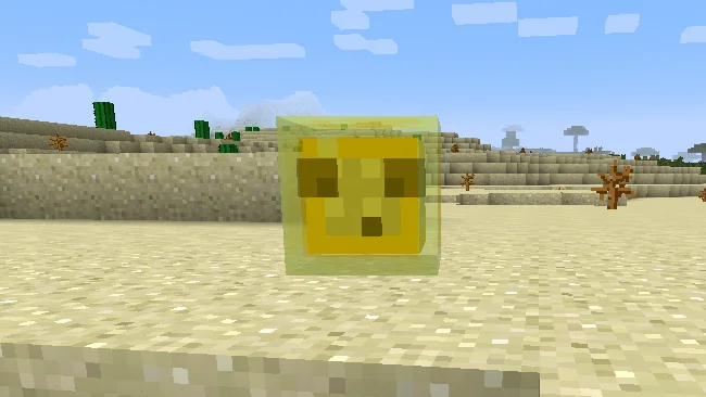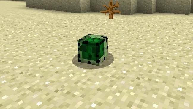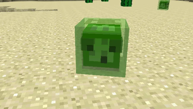 - Кактусовый слайм – внешне, напоминает зеленый вид, но с кактусовыми иголками. Имеет точно такие же характеристики, однако при слишком близком нахождении к игровому персонажу, слайм начнет колоться и наносить дополнительный урон, равный урону от обычного кактуса из ванильной игры. При смерти выпадает опыт размером в одну сферу, есть шанс получения блока кактуса.