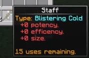 Когда игрок сделает ступку, пестик и насыщатель, он может приступить к созданию своему первого посоха. Для начала нужно создать какую-нибудь магическую пыль. Их есть огромное количество, поэтому игрок может посмотреть их крафт в моде JEI. Нужные для создания ресурсы нужно положить в любой последовательности в ступку, после чего нажать ПКМ пестиком. Далее эту пыль нужно положить на насыщатель и кликнуть по нему обычной палкой. Так игрок может получить посох, которым он сможет делать разные заклинания. Их также можно улучшить, соединив посох и разные предметы, например, порох или редстоун. У них есть прочность, из-за которой посох может сломаться. Для использования нужно зажать ПКМ и отпустить при полном заряде, как лук. При этом будет тратиться мана, которая отображается над сытостью. Эффект посоха зависит от магической пыли. Посох может как наносить урон, так и отталкивать или поджигать.