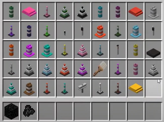 Мод также добавит большое количество новых блоков, которыми можно украсить и разнообразить дороги в городе. В эти декорации входят дорожные конусы, указатели, знаки и так далее. У большинства блоков есть много разных вариантов цветов, но все создаются из битума и нужного красителя. Есть несколько видов небольших отражателей, которыми можно осветить дорогу. Барьеры оградят дорогу, что может сильно пригодиться при создании мостов с дорогой. Конусы же могут пригодиться, чтобы оградить дорогу или место стройки.