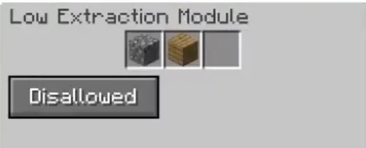 - Экстрактор - модуль, позволяющий трубе извлекать предметы из соседних сундуков, бочек, воронок и так далее. Его можно настроить в специальной вкладке трубы с данным модулем. Там можно создать белый или черный список предметов, которые могут проходить по трубе. Allowed - разрешенные блоки в трубе, а Disallowed - запрещенные. Если никаких предметов или блоков не указано в фильтре, то он будет пропускать любые. При улучшении данного модуля до второго уровня количество слотов для фильтра увеличивается до шести. За раз труба сможет передавать сразу по 8 предметов. На третьем уровне в фильтр помещается 9 предметов, а труба может транспортировать за раз по стаку.