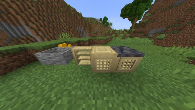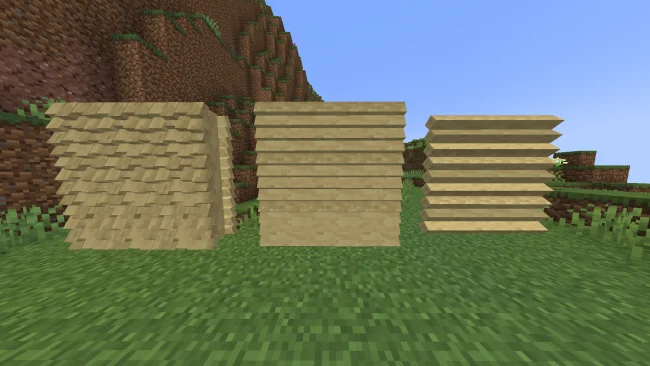 Есть три вида стен, каждая из которых имеет свою красивую модель и текстуру. Дома из таких блоков будут довольно сильно походить на реальные дома в деревнях. Все они также различаются по толщине, благодаря чему стены могут быть как тонкими, так и толстыми. Благодаря легким крафтам их можно сделать даже в начале игры. В моде есть кирпичи всех цветов из игры, а также ступеньки, вертикальные и обычные полублоки из них. Еще есть несколько других красивых блоков, которые могут пригодиться для декора.