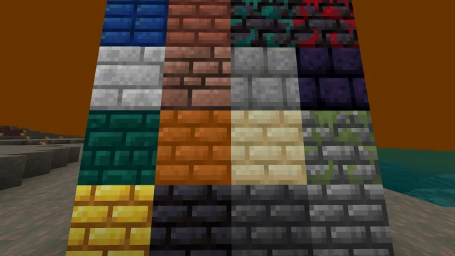 Данный мод добавит 16 новых видов кирпичей из разных пород. Из всех их можно сделать полублоки, лестницы и заборы.