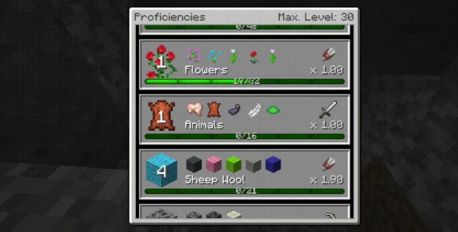 Proficiency: Honest Work - это мод для Майнкрафта, который добавляет систему уровней и прогресса к разным профессиям и занятиям в игре. Он позволяет игрокам развивать свои навыки и умения в различных сферах деятельности, получая новые полезные преимущества и возможности по мере повышения уровня.