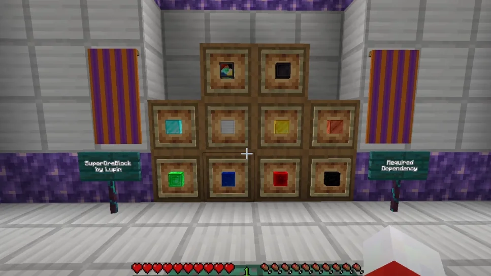 Главное нововведение мода — блоки супер-руды, доступные благодаря дополнению SuperOreBlock. Они становятся ценнейшим ресурсом, добыча которого приносит игроку ключ к новым вершинам развития. Найти такие залежи будет сложнее, чем привычные руды, но награда оправдывает усилия. Супер-руда используется для крафта предметов, которые заметно лучше привычных аналогов. Игрок получает мотивацию исследовать мир глубже, чтобы открыть новые материалы и испытать обновлённую систему прогресса.