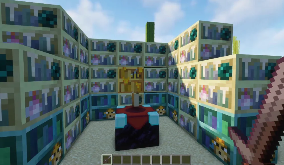 Apotheosis значительно расширяет возможности системы зачарования. В игре появляется множество новых чар, а старые получают дополнительные уровни силы. Теперь игрок может комбинировать эффекты, которые раньше были несовместимы, создавая по-настоящему уникальное снаряжение. Мод также добавляет особые улучшенные версии стола зачарований и наковален, позволяя более гибко управлять процессом. Кроме того, существуют редкие книги и артефакты, повышающие шансы на получение нужного зачарования. Всё это делает систему более глубокой и стратегической: каждая деталь экипировки становится результатом продуманного выбора и экспериментов.