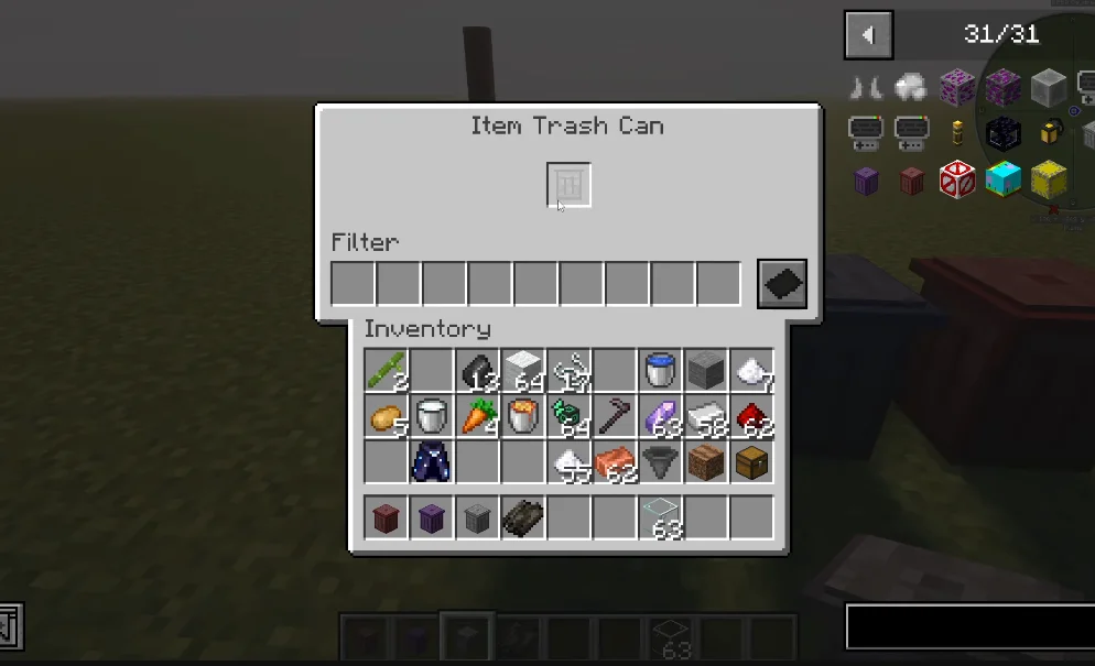 Мод добавляет сразу четыре типа мусорных контейнеров, каждый из которых предназначен для своей задачи. Обычная мусорка позволяет уничтожать любые предметы и блоки, что особенно полезно при разборе шахт, сортировке сундуков и очистке инвентаря. Жидкостная мусорка предназначена для удаления воды, лавы и других жидкостей, что упрощает работу с фермами и трубопроводами. Энергетическая мусорка используется для сброса избыточной энергии, предотвращая переполнение систем. Четвёртый вариант объединяет все функции и является универсальным решением для любой базы.