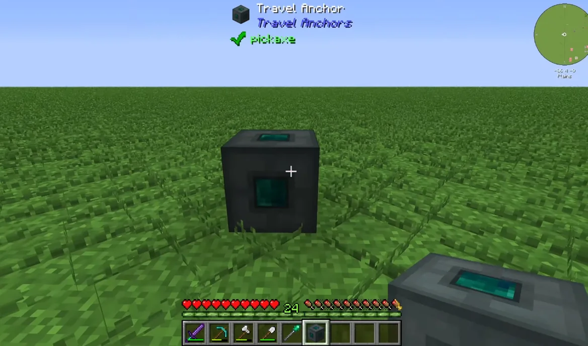 Travel Anchors строится вокруг двух ключевых элементов — якорей путешествий и посоха путешествий. Посох позволяет игроку телепортироваться на короткие расстояния, что особенно полезно внутри базы или при перемещении по сложному рельефу. Якоря путешествий, в свою очередь, служат точками телепортации на любое расстояние, независимо от расположения и измерения. Такой подход создаёт гибкую систему, которая одинаково хорошо подходит как для локального передвижения, так и для глобальной навигации.